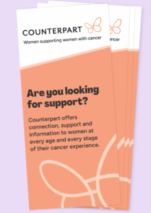 Counterpart offers connection, support and information to women at every age and every stage of their cancer experience. This DL brochure outlines our services, including peer support, events and activities, and information provision.