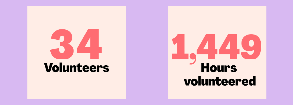 34 volunteers, 1,449 hours volunteered